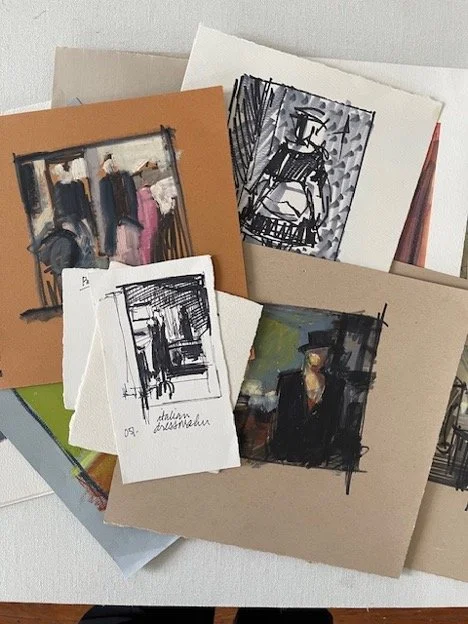 This is a chance to spend time with distinguished painter and career art director Patricia Canney and learn her process of creating bold, impactful paintings. In this workshop, we’ll use her vintage dress wear and tailored forms for inspiration. We will learn her composition development method, from initial inspiration to photographing and cropping a design, working up impactful thumbnails and sketches, and creating a finished painting or two using big brushes and bold strokes.